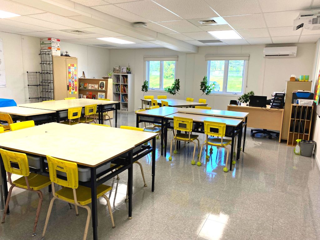 Le conseil municipal a proposé d’annexer deux classes modulaires à l’aréna Le Stardien, situé juste en face de l’école. Lors de la rentrée scolaire du 29 août, les élèves de 5e année qui occupaient les lieux pour leur première journée, ont fait visiter avec enthousiasme leur nouvel espace d’apprentissage aux médias. Les classes sont modernes et climatisées, munies d’un tableau électronique et d’un coin-lecture.