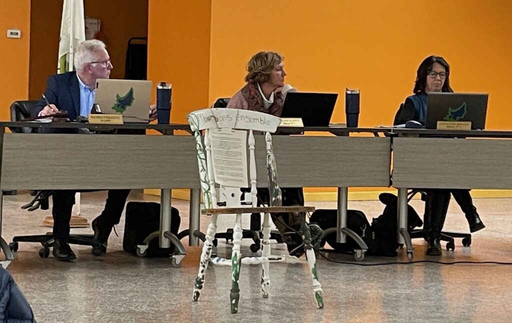 « Cette chaise symbolise le futur des enfants et vous rappelle que vos décisions ont un impact sur leur avenir », a souligné la citoyenne Colombe Landry au nom du comité Vers un val vert.